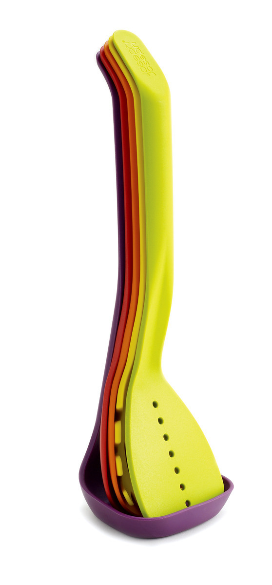 Nest je sjajna kolekcija praktičnih i kompaktnih kuhinjskih alata koji štede prostor. Inovativan dizajn omogućava da svaki indivudualni element unutar seta bude uredno odložen čineći jednu celinu. Zbog ove prednosti zauzima minimalno mesta, gde god da je smešten. Nest pribor obuhvata 5 osnovnih kuhinjskih alata složenih u kompaktnu, samodržeću celinu. Kada su ovi alati složeni u "gnezdo" svaki od njih se čvrsto oslanja na drugi ispod ili iznad njega. Za to je zaslužan sam oblik alatke, kao i magnet koji se nalazi unutar vrha svake drške. Ovaj raznobojni dizajn ne samo da odlično izgleda već i eleminiše svaku potrebu za dodatnim posudama i fiokama punim zamršenih kuhinjskih alatki.